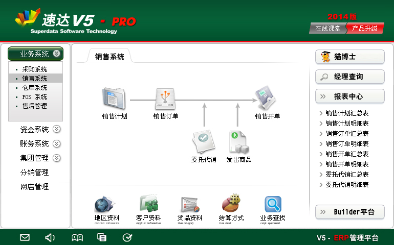 《速达V5-PRO-商业版》作为ERP管理平台,特别适合中型企业使用。平台全面实现供应链业务管理、资金管理、财务管理、客户关系管理、异地分销、远程配送、多机构集团化管理。平台通过强化业务流程控制,多级审批管理,有效地帮助企业实现业务管理、财务管理的制度化。平台科学地融入Builder-Ⅲ二次研发工具,真正实现了产品平台化,满足企业管理个性化需求,全面提升企业管理的能力。