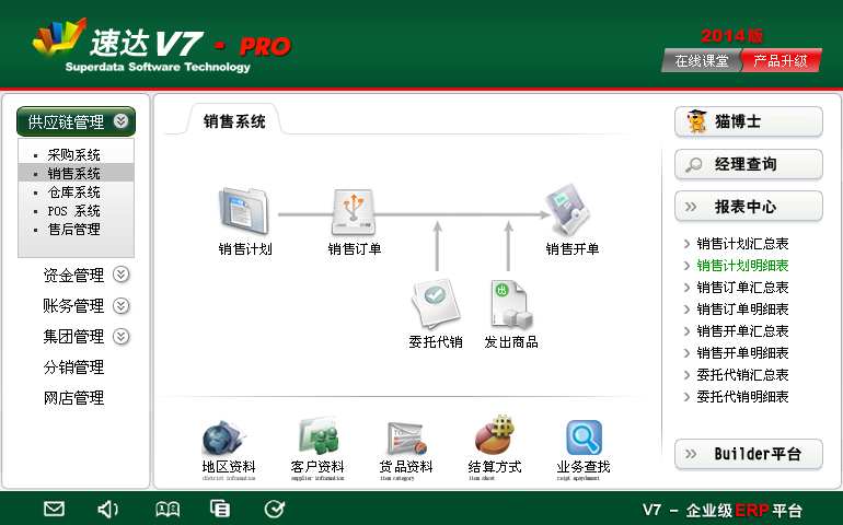《速达V7-PRO-商业版》作为高端ERP管理平台,特别适合大中型企业使用。平台全面实现供应链业务管理、资金管理、财务管理、客户关系管理、人力资源管理、办公管理、异地分销、远程配送、多机构集团化管理。平台通过强化业务流程控制,多级审批管理,有效地帮助企业实现业务管理、财务管理的制度化。平台科学地融入Builder-Ⅲ二次研发工具,真正实现了产品平台化,满足企业管理个性化需求,全面提升企业管理的能力。